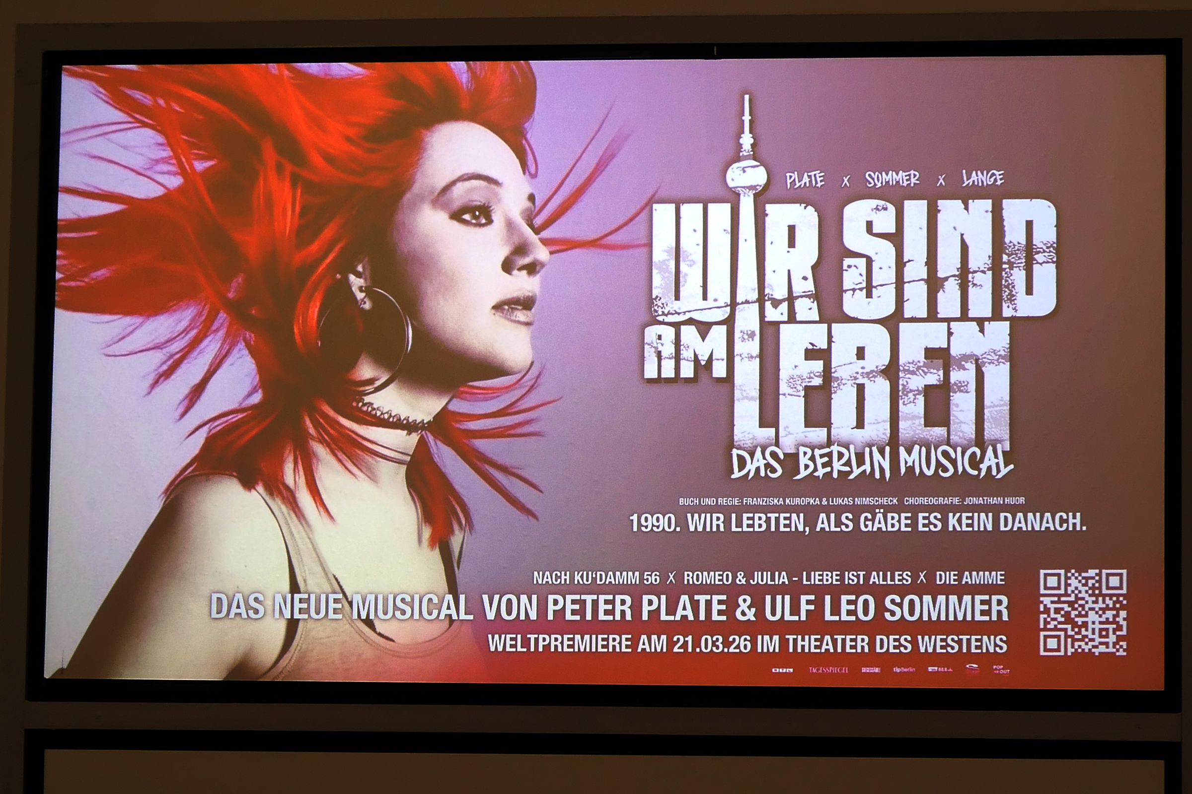 „Es wird sehr, sehr komisch, denn die 90er waren nicht nur traurig oder politisch – sie waren auch absurd, hemmungslos, zärtlich verrückt. Wir wollten das alles zeigen: die Traurigkeit und das Tanzen. Die Wut und die Wärme. Den Lärm und das Leise“, sagt Musical-Komponist Peter Plate. Zusammen mit seinem Partner Ulf Leo Sommer bringt er im Theater des Westens das Berlin-Musical „Wir sind am Leben“ auf die Bühne. Es spielt in den frühen neunziger Jahren in Berlin und will die Stimmung jener Zeit zwischen Chaos und Aufbruch einfangen.